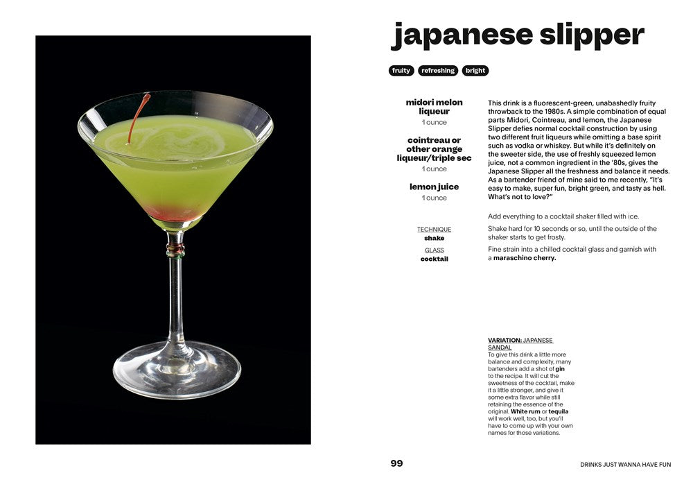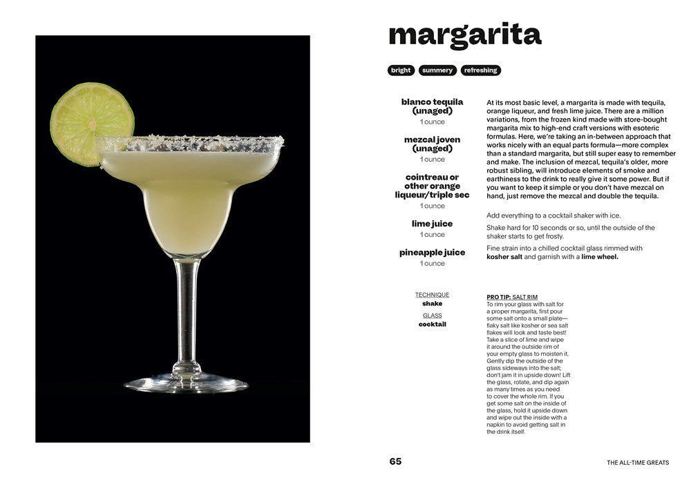 Bar veteran and writer Fred Siggins sets you up for success by walking you through the basic techniques of making a cocktail (shake, stir, build, and blend), the tools of the trade, easy garnishes, and advice from the professionals (use lots of ice!) to serve the best drinks possible. He also includes smart tips on how to stock your bar depending on the types of drinks you like and how to make cocktails in bulk so you can serve a group of friends and still relax when it’s party time.