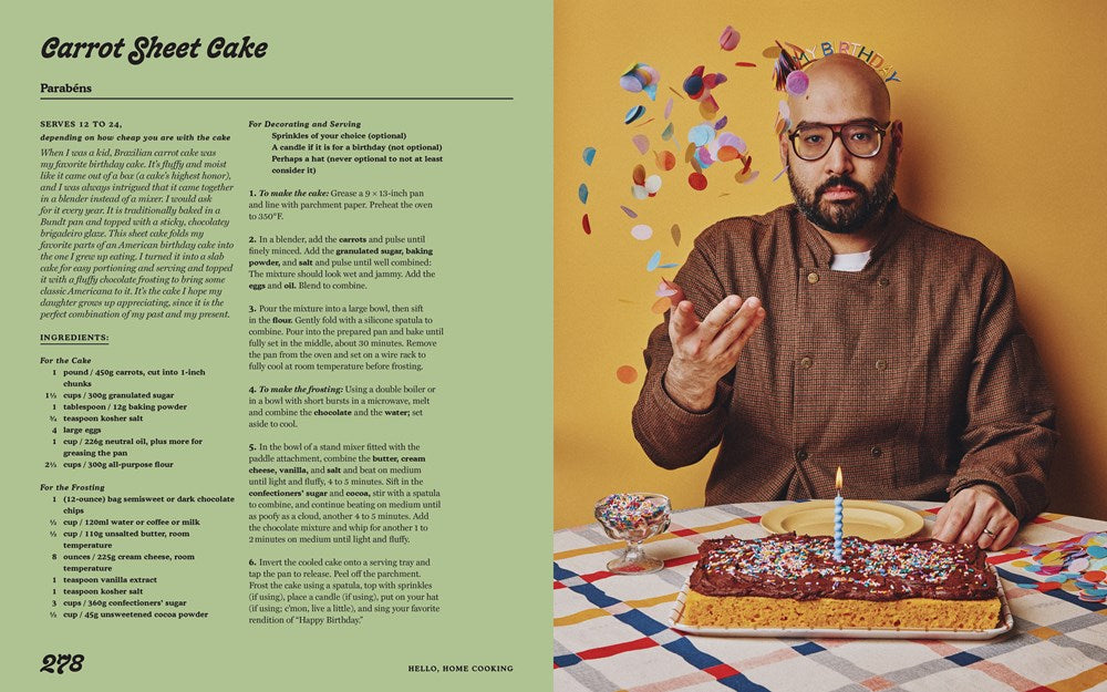 Deeply rooted in everyone’s nostalgia, Ham's recipes center culture and community with beloved dishes from across different nations that carry a can’t-quite-put-my-finger-on-it hominess, regardless of the origin. He teaches cooks of all experience levels about the base flavors of cuisines around the world, freeing them to mix, match, and alter classic dishes into something delicious and new. From the Macarona Bechamel that parallels American Mac n Cheese and Basbousa (a sweet, semolina cake) that would rival any Blondie, to Egyptian ta’amaya (like falafel but made with fava beans instead of chickpeas) and beyond, Hello, Home Cooking shows you how to highlight your own heritage in familiar recipes by swapping in certain ingredients for others—focusing on affordability and availability. Most people are familiar with the mezze staple muhammara, a dip made of ground walnuts and charred red peppers. Ham’s go-to version isn't red; It's green from roasted hatch chilies and pistachios. The Brazilian icebox cake, pave, is usually made with pricey, impossible-to-find fresh passionfruit—try it with seasonal strawberries instead for a summery treat.
